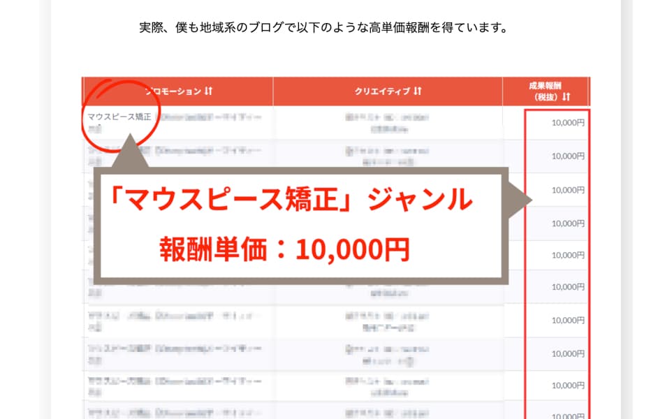 LPにもありましたが、マウスピース矯正は、1件1万円以上の案件も多いジャンルです。