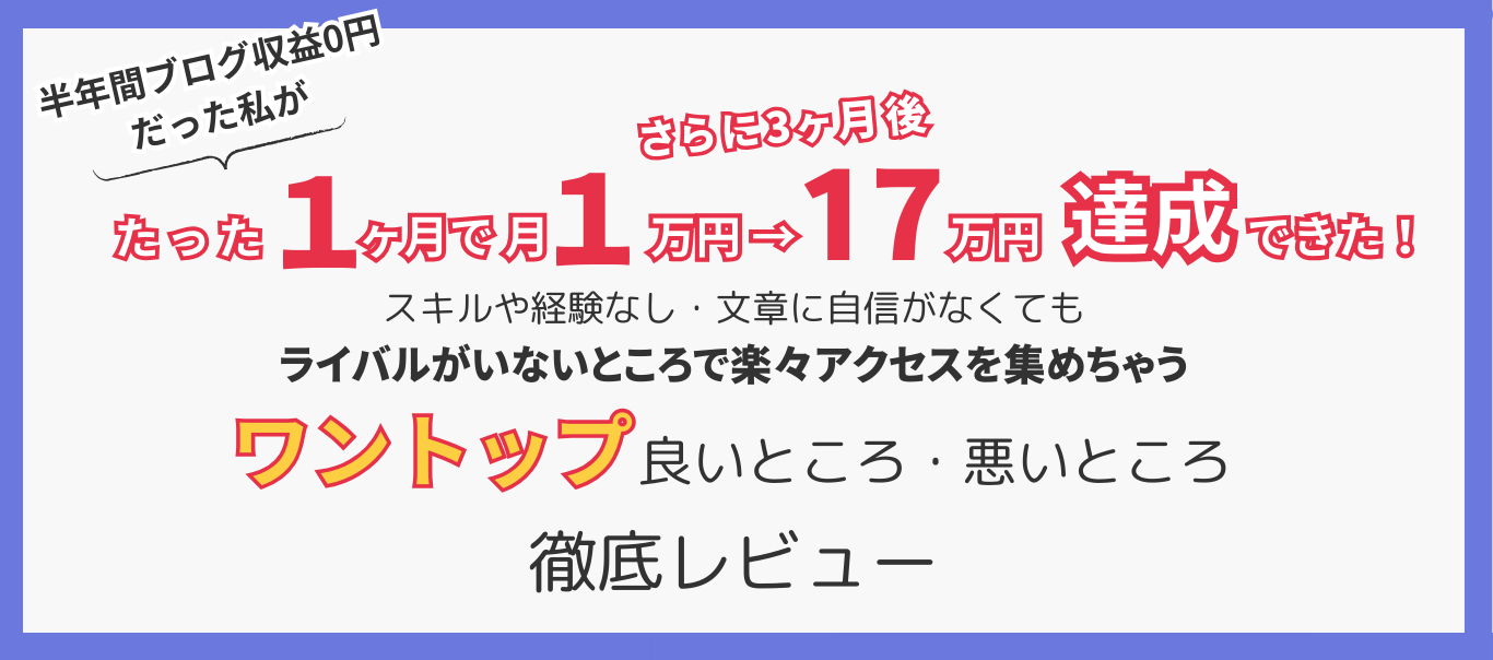 ワントップはブログを始める前の準備から実践まですべて網羅されているので遠回りせず稼ぐことができますよ。
