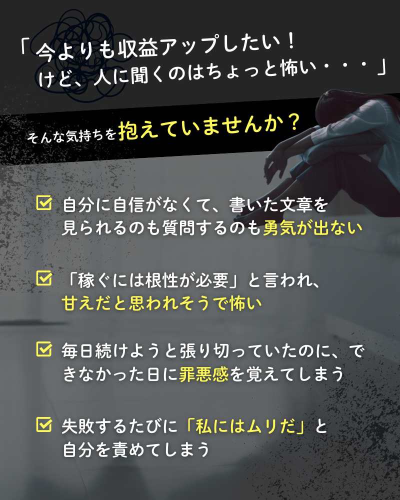あなたが初心者であればあるほど、いろんな不安や悩みが出てくると思います。