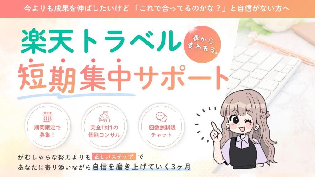 私が今まで培ってきた、楽天トラベルのノウハウを可能な限りすべてお教えしますね。